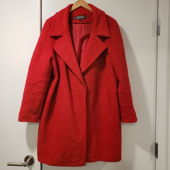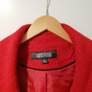 Red maxi coat, 55%polyester 45%wool, lining 100%polyester. Comfortable, great condition (slightly used), no damage.