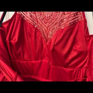 Red cocktail dress with beaded bodice, built in bra. Pleated skirt - Worn once!
