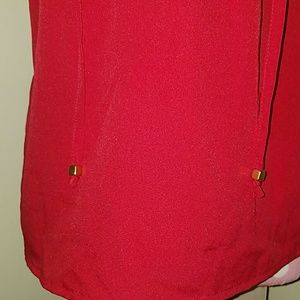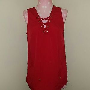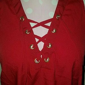Red criss cross tie blouse