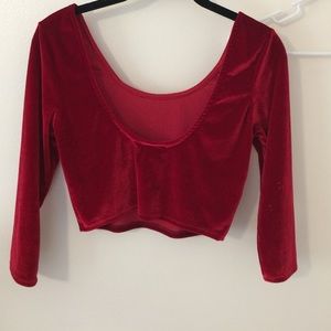 Red velvet long sleeve crop top. Can be included in the crop top bundle