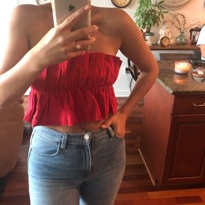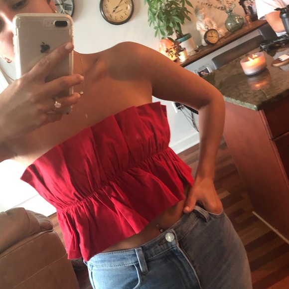 Red crop top with ruffles. Ties in the back for full support! Brand new ! Never worn !
