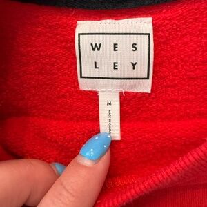 Red cropped crewneck sweatshirt racing stripe minimal casual pullover womens M