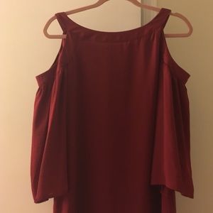 Red cut off shoulder mini dress