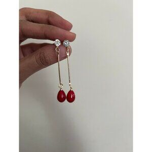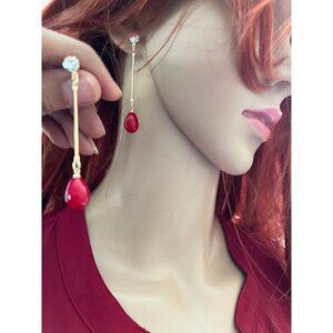 Red drop earrings red gold earrings teardrop chandelier long earrings rhinestone