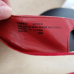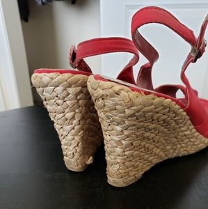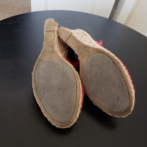 Red fabric espadrilles with slingback strap and peek toe. Wore several times. Smoke and pet free home