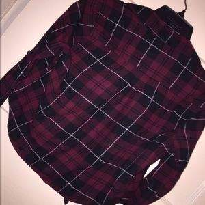 This flannel is about a mid size to crop length button down. the sleeves are adjustable to a mid size or complete long sleeve.