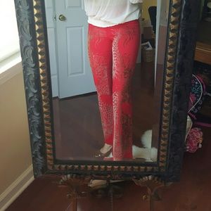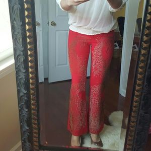 Gorgeous design pants. Back of pants is solid. Flare bottom. 12 & 1/2 waist x 30 inseam x 38&1/2 long.