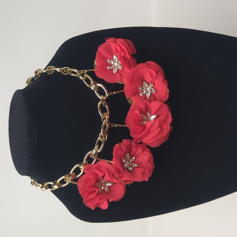 Red flower statement necklace