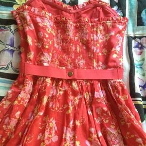 Size: M; bubble hem and pockets; comes with a red removable belt