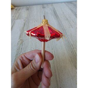 Red glass umbrella Beach tropical Hawaiian ornament Xmas tree thatched