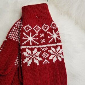 Red gloves with white snow flakes
