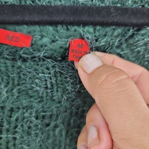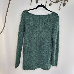 green crewneck eyelash fringe knit sweater. Preloved condition. All sections of interest as well any known flaws have been documented in the photos and noted as thoroughly as possible. if there are no known flaws, none will be noted. Please feel free to ask any questions before purchase 🙂.