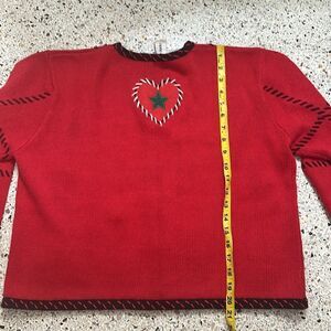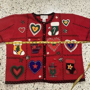 EUC Hampshire Studio red green holiday Christmas sweater cardigan large L ugly tacky party granny core