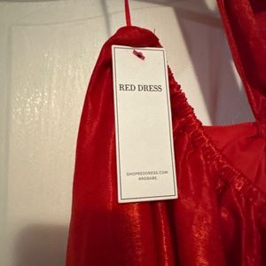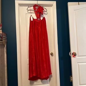 Red halter maxi never worn runs big could be sized down to a M or up to a XXL
