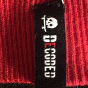 DECODED red hat. Stretchy material, no size listed but would fit boy med/large, small adult male. Never worn.