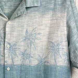 Red head Hawaiian shirt men’s 2XL Tropical Palm tree design short sleeve button up blue/white