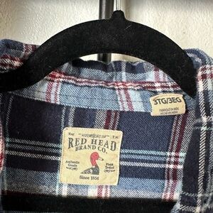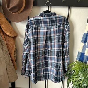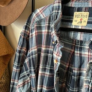 Red head brand co blue plaid flannel button down oversized vintage shirt Shacket
