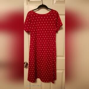 Like new women's sz Sm LuLa Roe red heart & polka dot dress short sleeve with a fitted busting a slight flare skirt very cute!! refer too pics