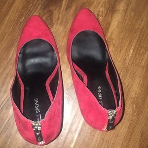 Solid red pumps with gold zipper in the back wore twice with little black scuff marks shown in pictures.