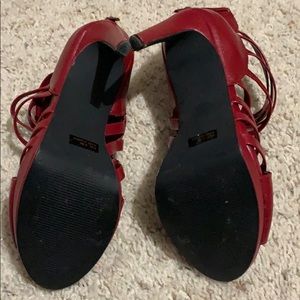 Red strapped heels, worn once, no scratches or scuffs