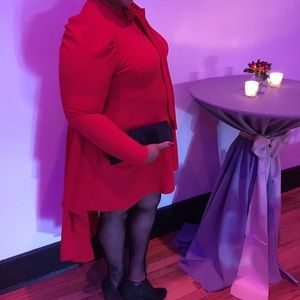 Red high low dress with bow in front fits like 2x and only worn 1 time for a Christmas party. Still in plastic and ready for a new home