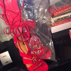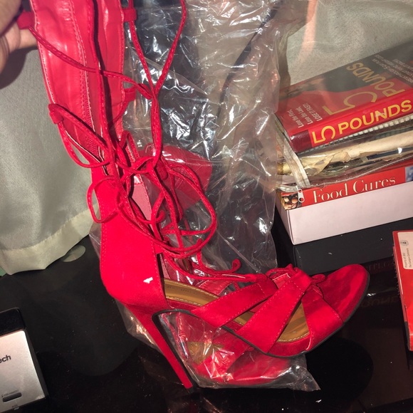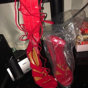 Never worn lace up heels* Hey guys FYI ; the white spot is tissue there’s no scars on the shoe