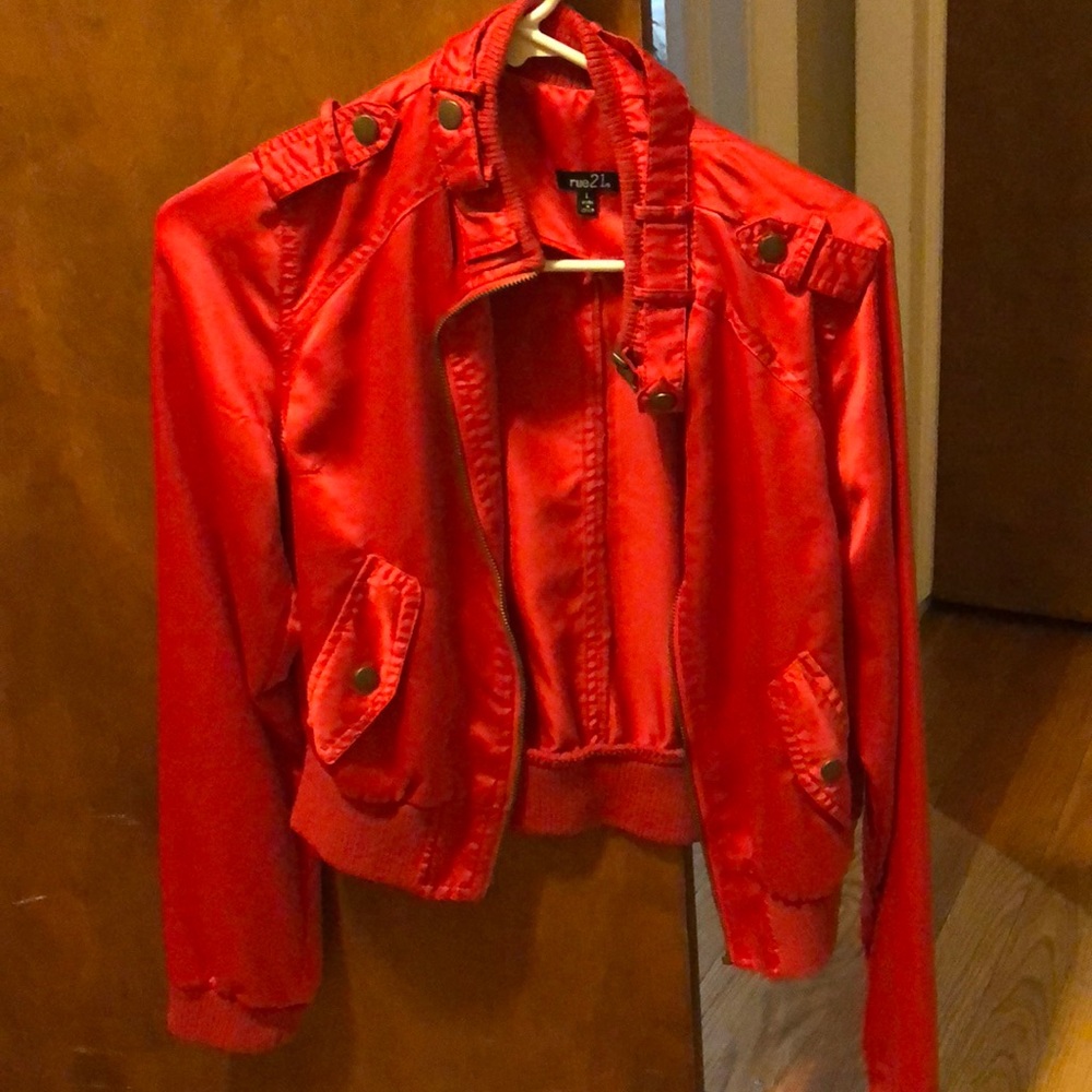 Thin, stylish red jacket. Only worn once for family pictures. Great condition.