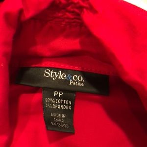 One time worn red style and co petite jacket! In excellent condition! Very cute and adjustable! Collar, sleeves and waste adjustable!!! Smoke And pet free house