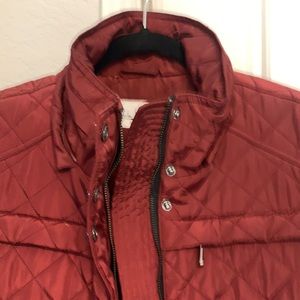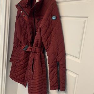 Water proof jacket. Red. Perfect condition. Never worn. It has a beautiful belt and a hoodie that can be taken off. Very soft inside