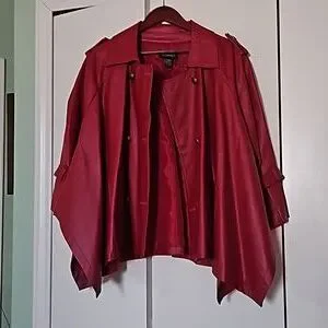 Red, faux leather jacket. Only worn once. The jacket is in mint condition