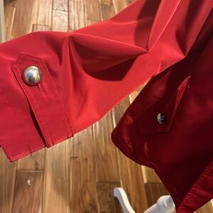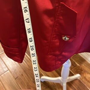 Red jacket, short length, pleat in back, double breasted buttons. Excellent condition. Smoke free pet free home