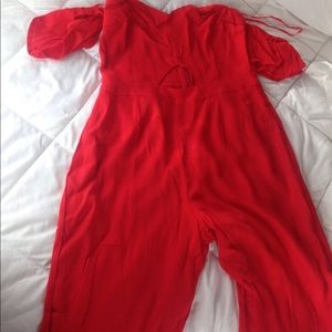 Sexy red jumpsuit, nice fitted, cutout. First picture is from the website I bought it off, wrinkle-y because it's been sitting in my drawer forever (never worn, only tried on). Would be best for a size 7-9