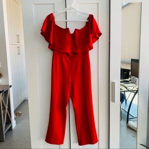 Off the shoulder red jumpsuit!