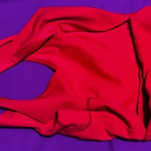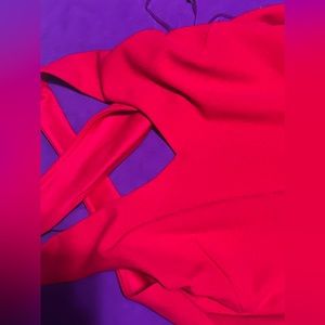 Red jumpsuit. Worn once. Has small stain, should come out when washed.
