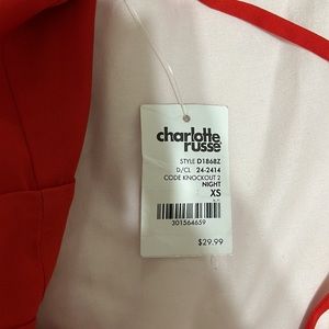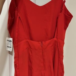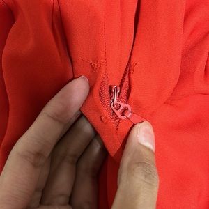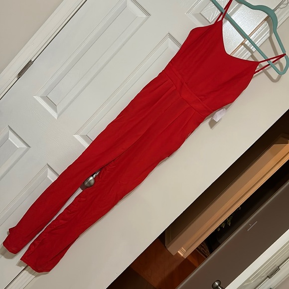 Worn once. Tore the zipper stitching when taking it off. Didn’t fit me. Cannot return it. Not dirty. Good condition. Red jumpsuit. Spaghetti strap.