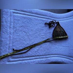Red kiss Rhinestone Bra top size L nylon Spandex Elastic Black