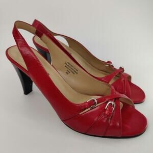 Red leather Karen Scott Slingback peep toe pumps sz 8