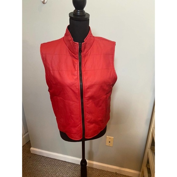 Ladies red leather vest. Fleece lined inside. 109% genuine leather, bought from local retailer Hening Furs. In perfect condition no damage or wear. Smoke free environment. Size M