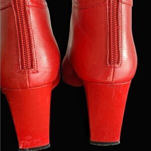 Red leather laser cut lace high boots 4”heel 6.5 Bellini fabulous color sexy