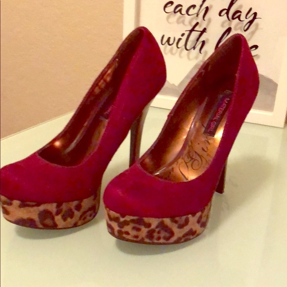 Red leopard heels ... suede like material. Gently used. Wore 2x