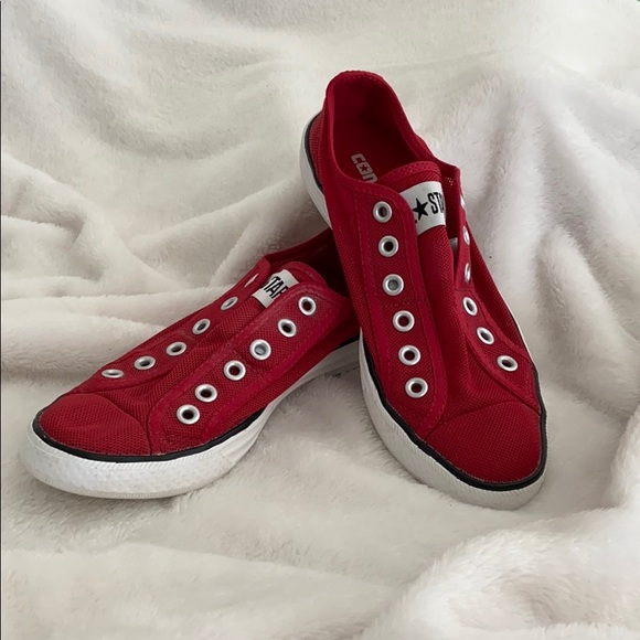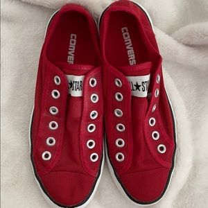 Rare red mesh Converse slip on sneakers. These are so fun! Unique mesh material, barely worn.
