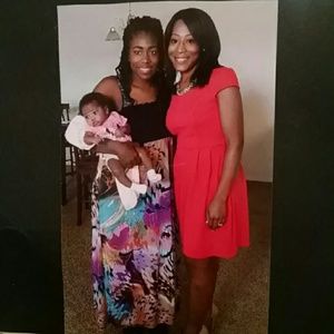 Red casual short sleeve mini dress with cross back straps, cut 4" above the the waistline, no rips, tears, worn once (see last pic) the actual color is coral, 94% polyester/4% spandex, size 6 but can fit S/M, I'm a size M(8-10)