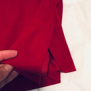 Red Skirt Size 7. Only worn a few times. Like new. Always been dry cleaned. But, does not have to be. Smoke free home. Has a small side slit on one side and back zipper. Short. A type of velvet.