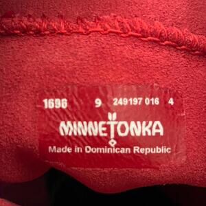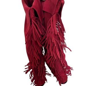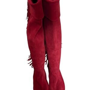Red Minnetonka suede knee-high boots with fringe detail size 9