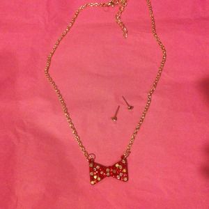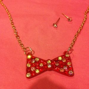 Red multitoned necklace w/ crystal studs