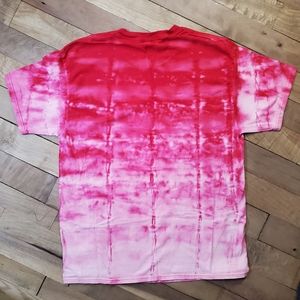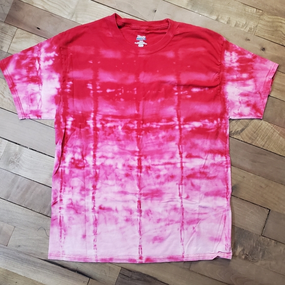 Each is one of a kind! Handcrafted red ombre reverse tye dye (bleached), pre-shrunk 100% cotton Hanes Beefy tee