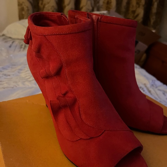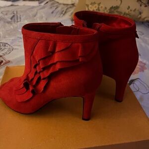 These are a pair of red open toe heels . Very dressy and comfortable! Pairs nice with jeans or a dress !!!