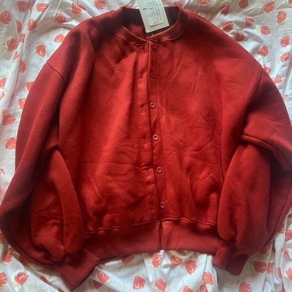 Red oversized jacket, very comfortable.
