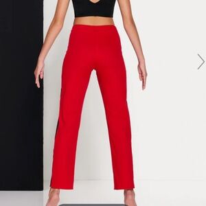 Red pants with zipper and button in front and black strips on side( made for Dance but can be used for every day)
