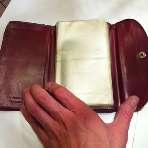 I'm guess this cute wallet is from the 80's or 90's. it has many clear slots for all of you plastic and ID's. made with genuine leather